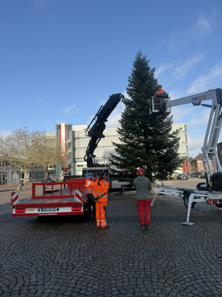 Auch in diesem Jahr durften wir wieder einen wichtigen Teil zur weihnachtlichen Atmosphäre in Wilhelmshaven beitragen. Die großen Tannenbäume am Rathaus sowie am Berliner Platz wurden von unserem Team fachgerecht umgesetzt.